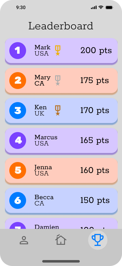A home screen that increased ease of use for all users, and increases a sense of competitiveness between either one self or friends.
